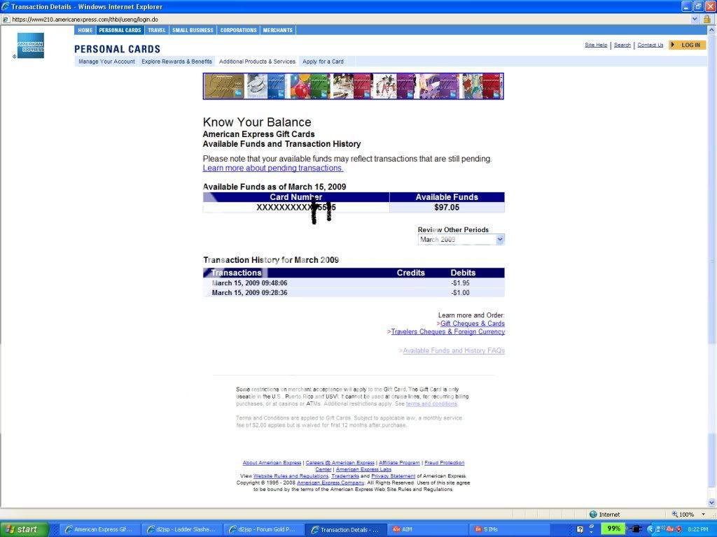 #1 Posted: 16 Mar 2009 12:52 pm Post subject: $97.05 american espress credit card gift card for sale |