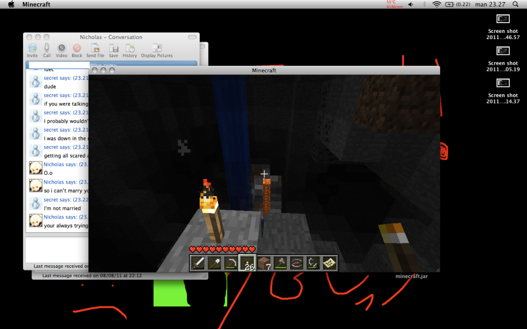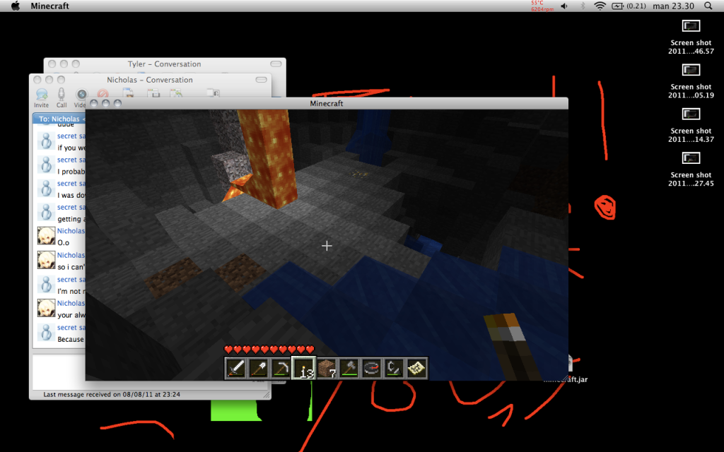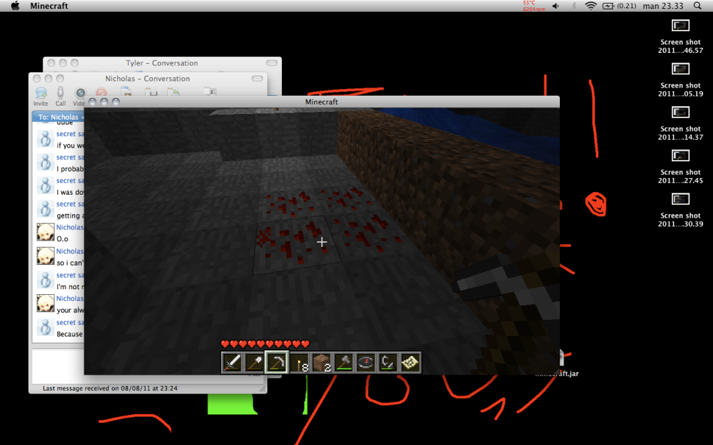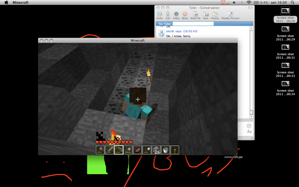 And I found redstone! Amazing, now I can probably power up some shit, so I don't have to open doors no more! Amazing!