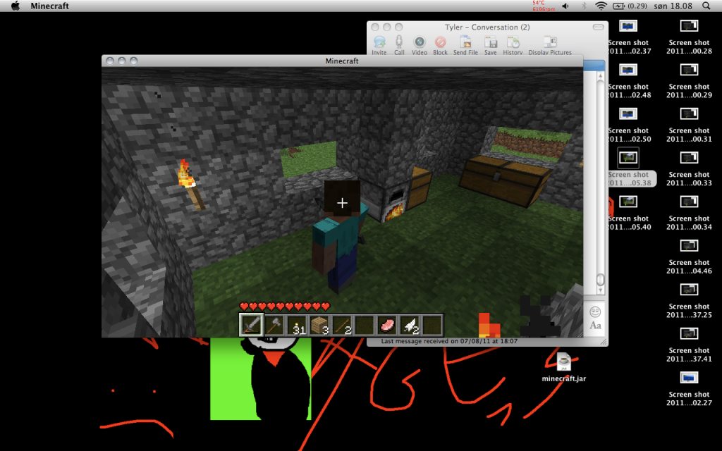 And this is the oven, by which Tylr and I would make sweet love if he ever was so awesome to actually play minecraft with me. If he were, all these screenshots would feature him too. What a lovely day we could've had.
